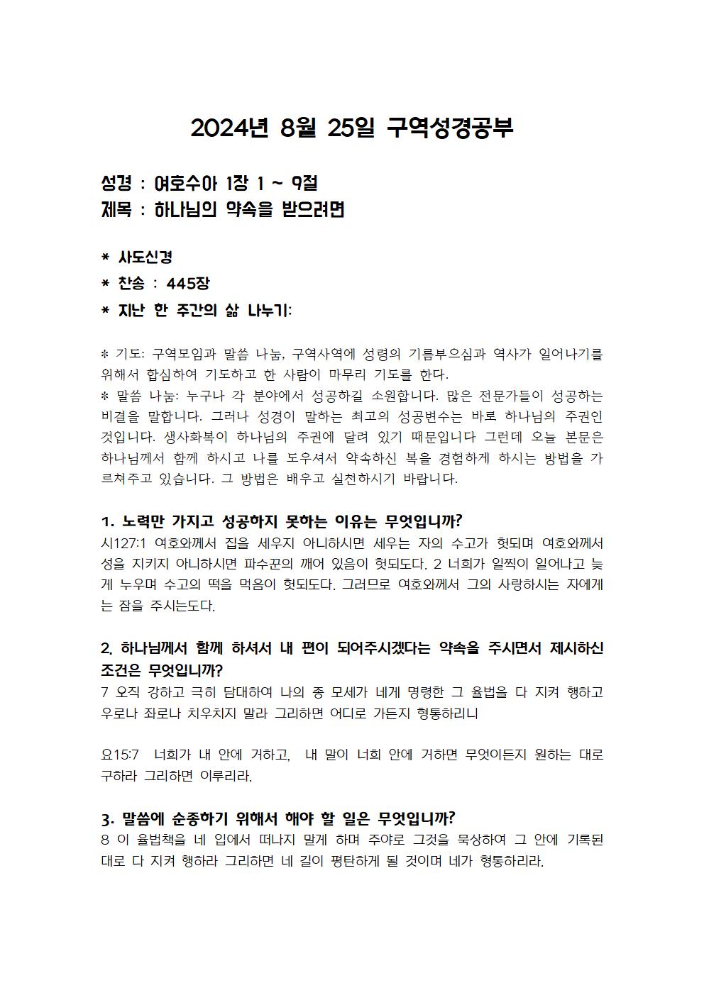 8월 25일 구역성경공부