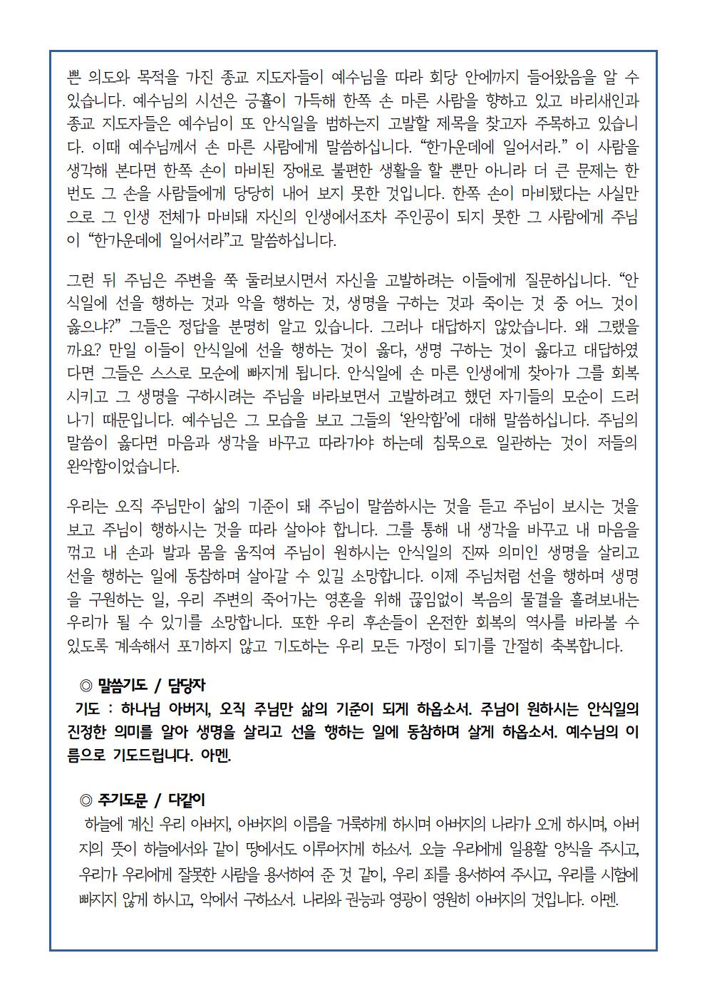 주일 설교 예배요약