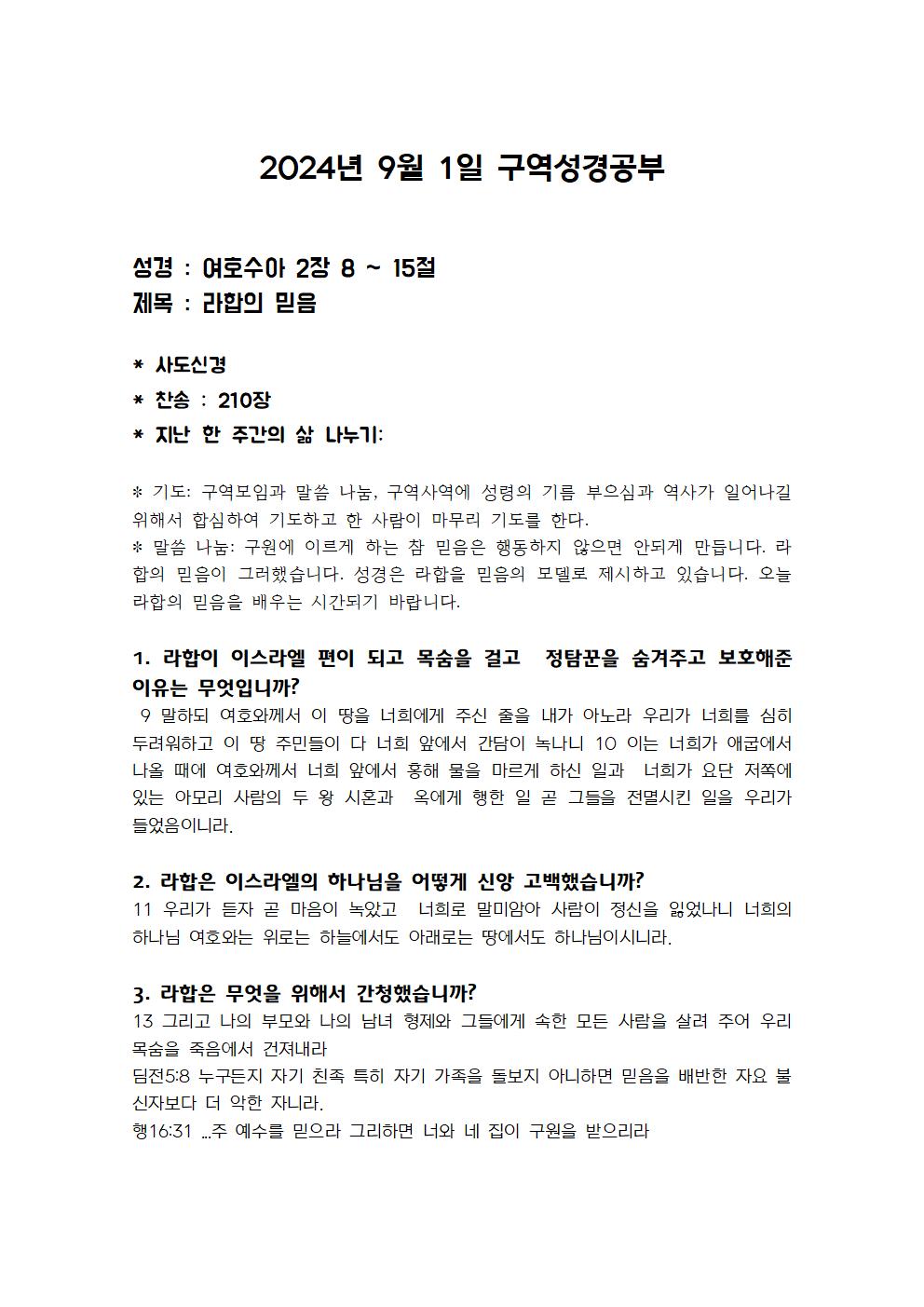 9월 1일 구역성경공부