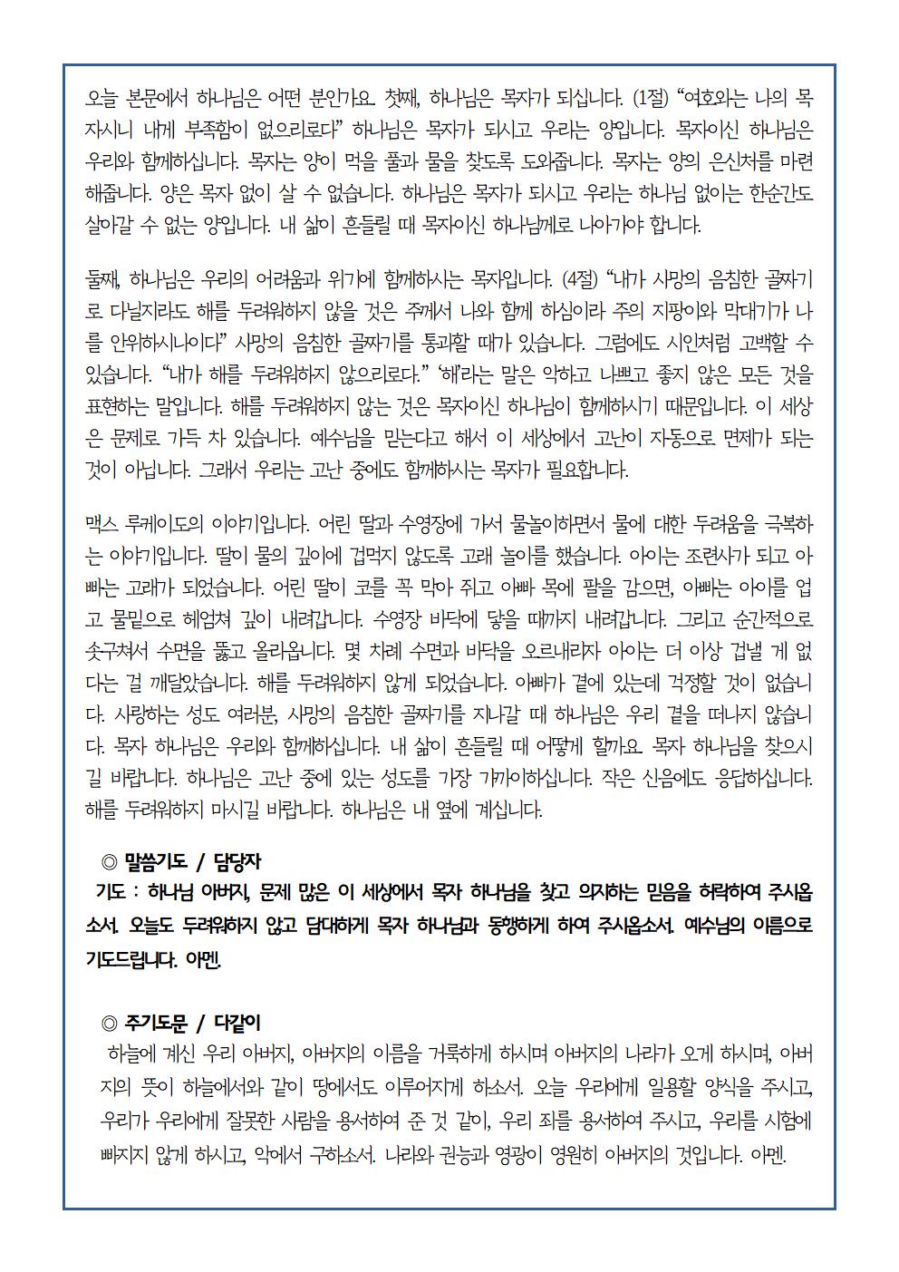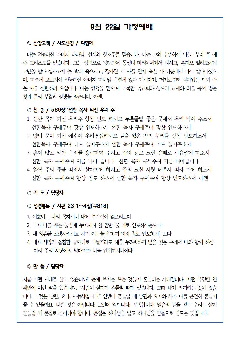 9월 22일 가정예배순서지