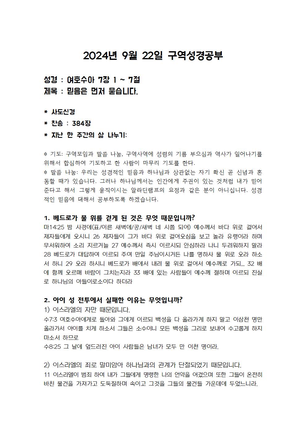 9월 22일 구역성경공부