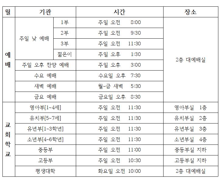 예배시간안내